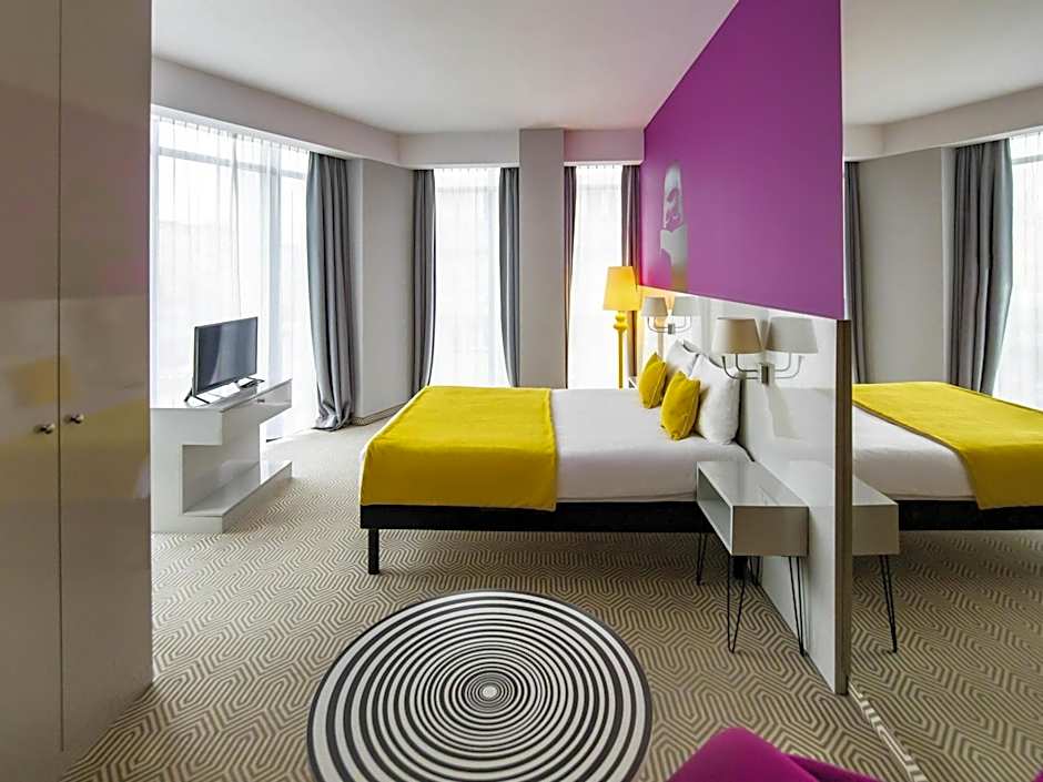 The double room offers air conditioning, soundproof walls, as well as a private bathroom featuring a shower and a hairdryer. The double room features a flat-screen TV, a tea and coffee maker, a wardrobe, a carpeted floor as well as city views.